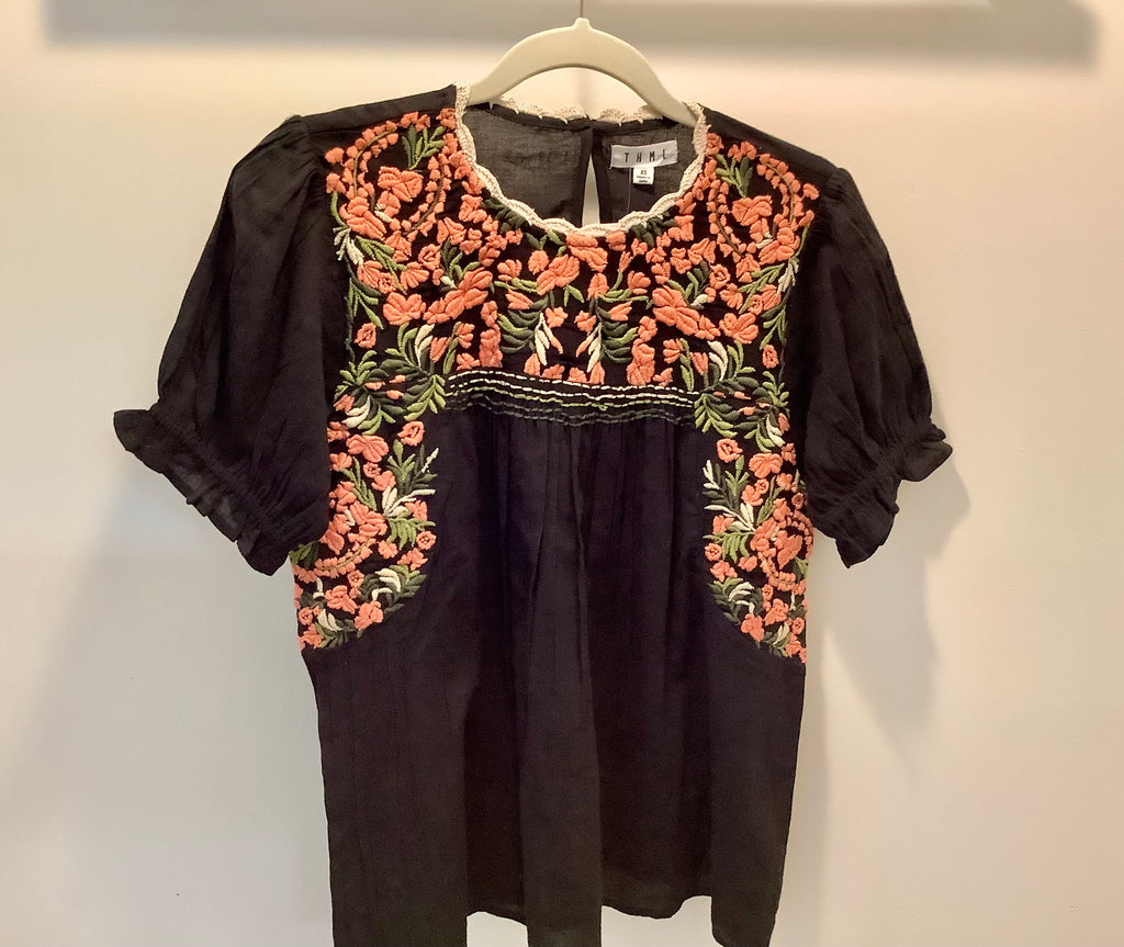 Berry Floral Print Smocked Pullover Top Plus Curvy