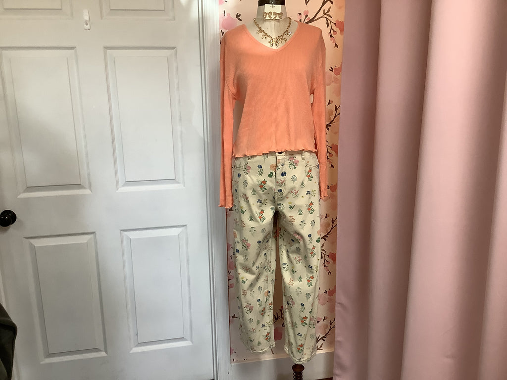 FLORAL PRINTED WASHED STRETCH TWILL BARREL PANTS