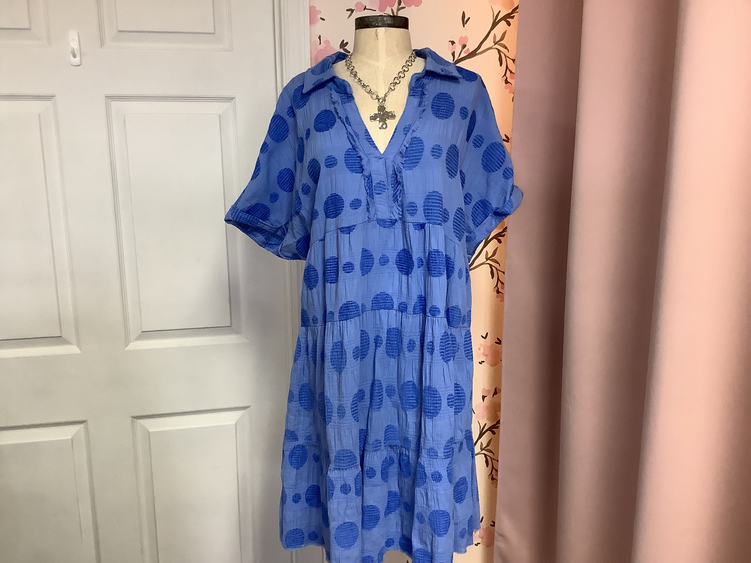 Celebrate your style with this charming blue polka dot dress, thoughtfully designed for plus and curvy figures. The classic polka dot pattern adds playful sophistication, while the tailored fit flatters your silhouette with confidence.