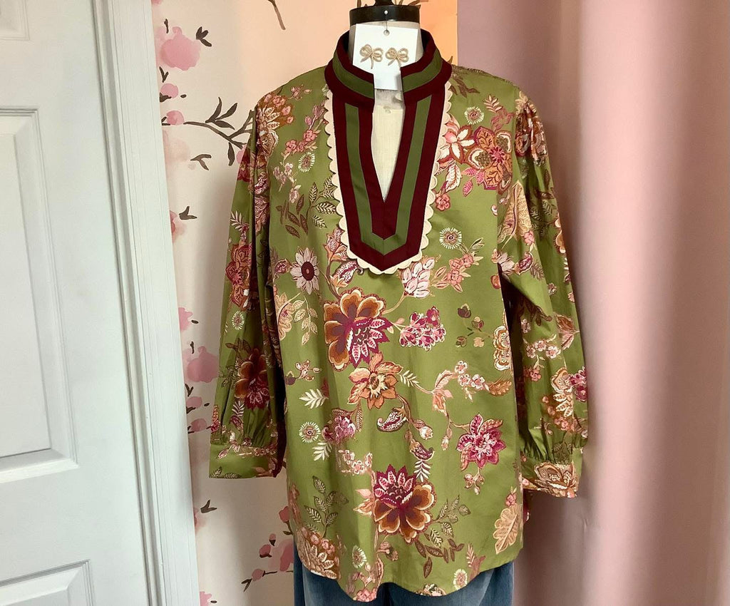Olive 3/4 Sleeve V Neck Top Plus Curvy