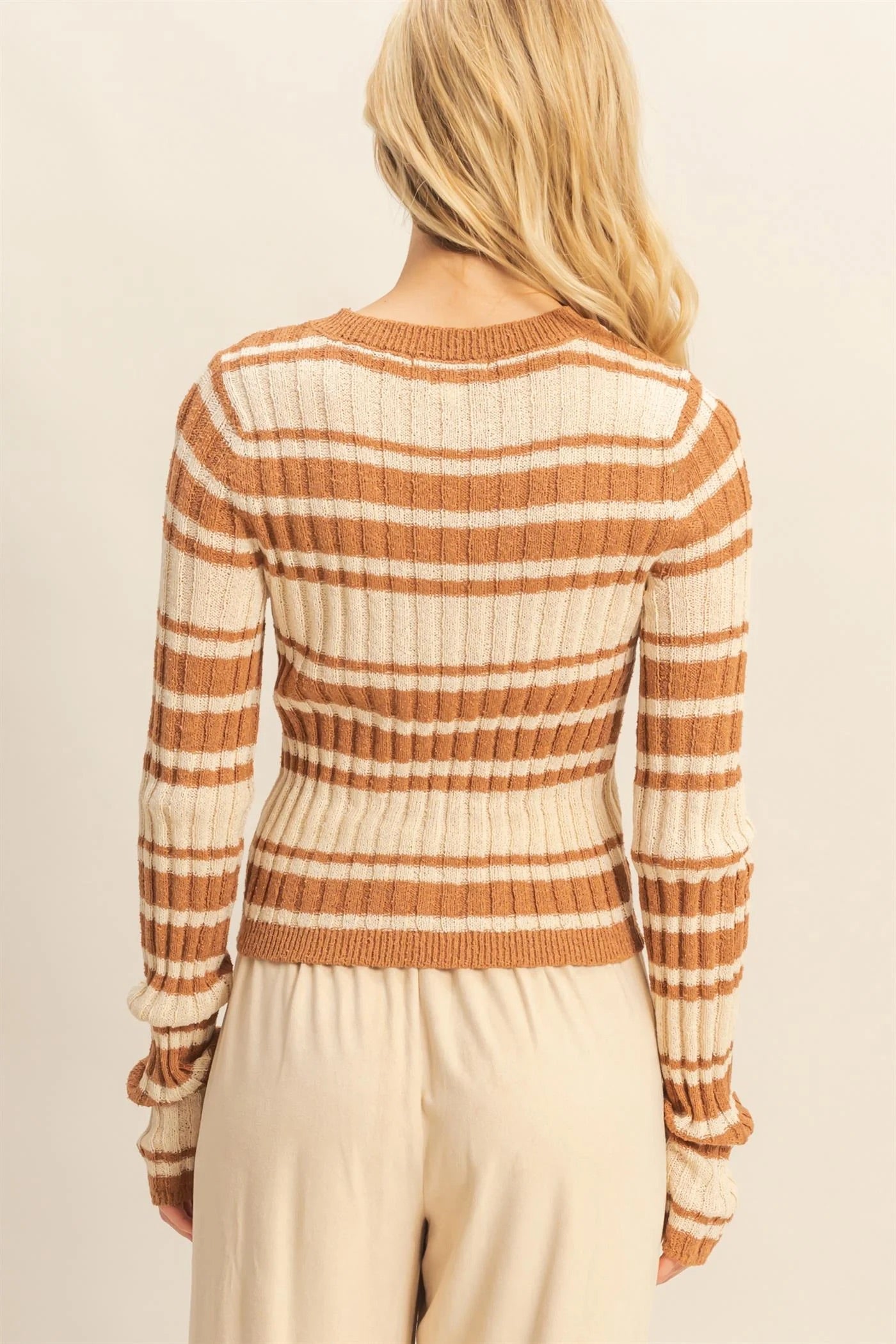 Brown Horizontal Striped Crew Neck Sweater
