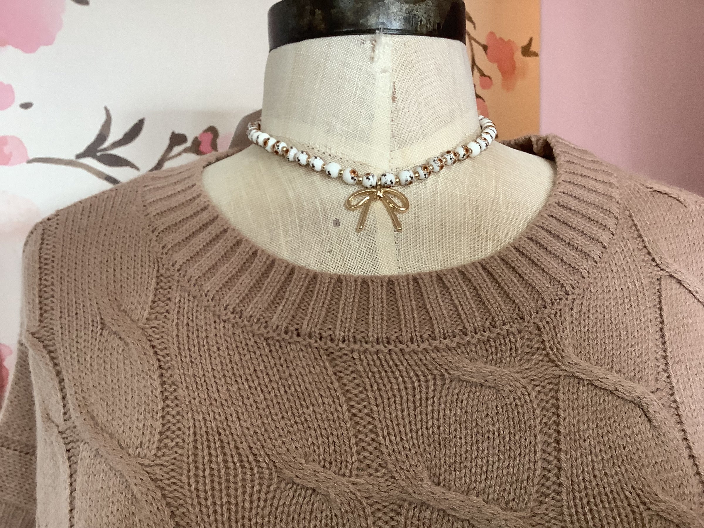Taupe Sleeveless Oversized Cable Knit Sweater Vest