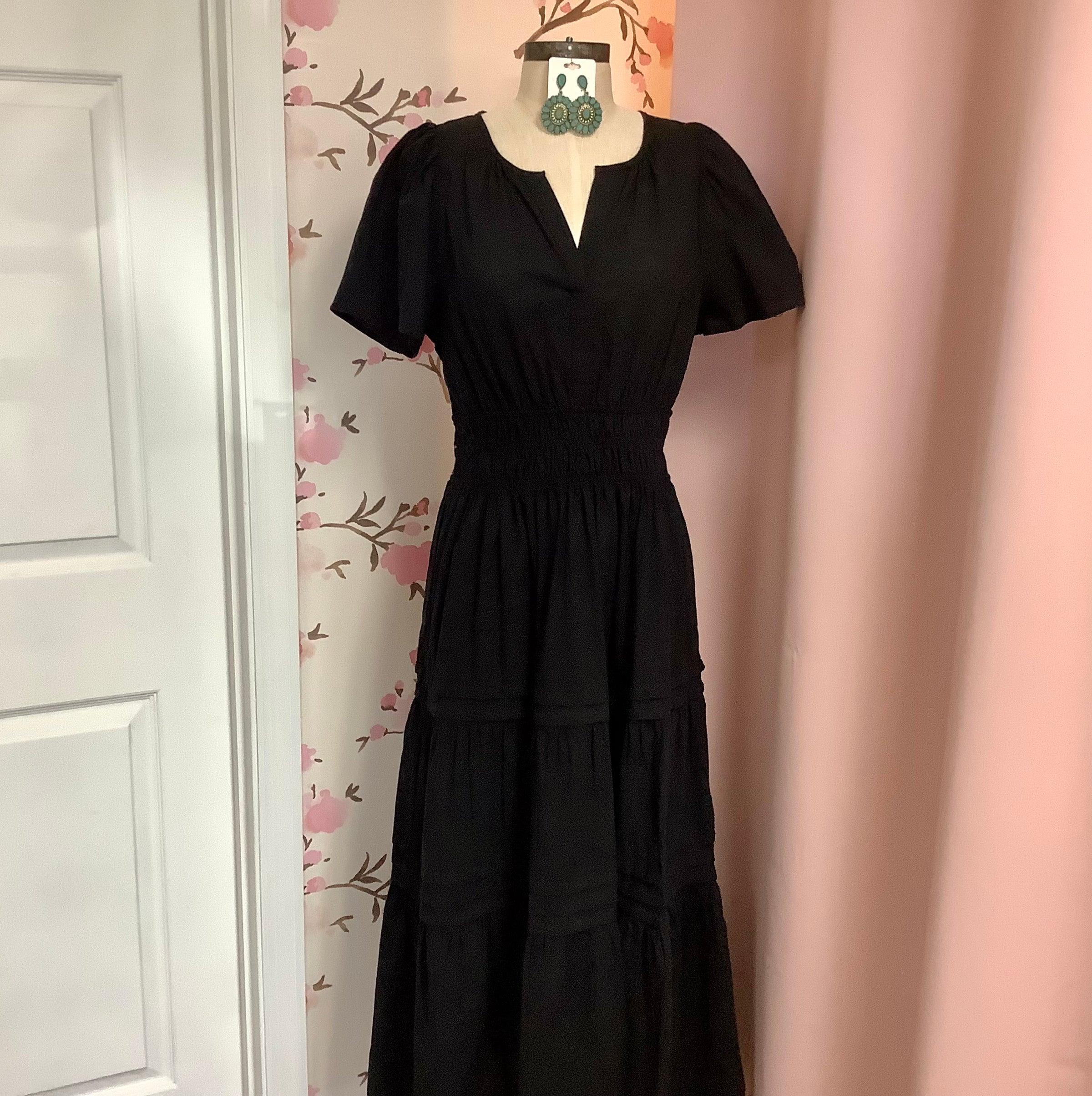 This short sleeve midi tiered dress will be a go to for your day trips!
