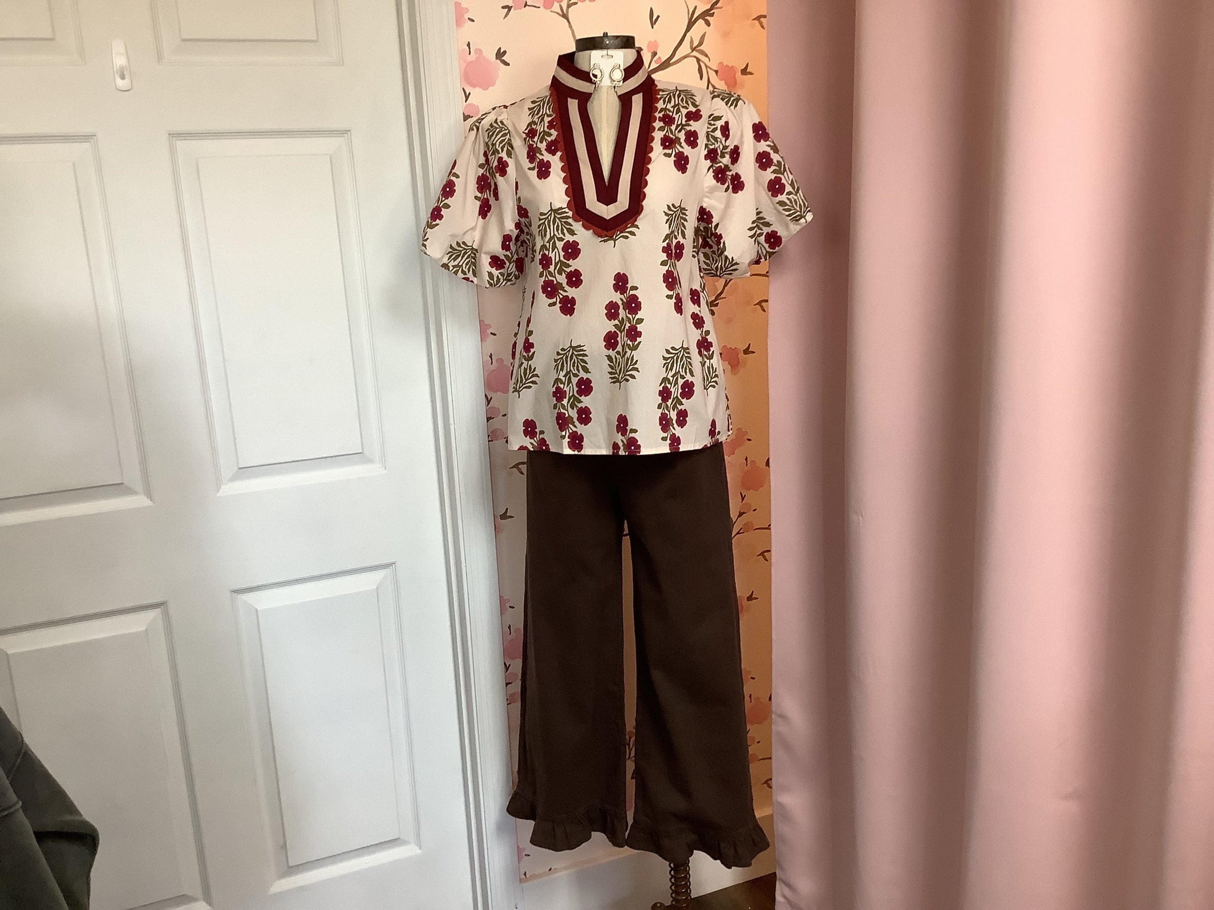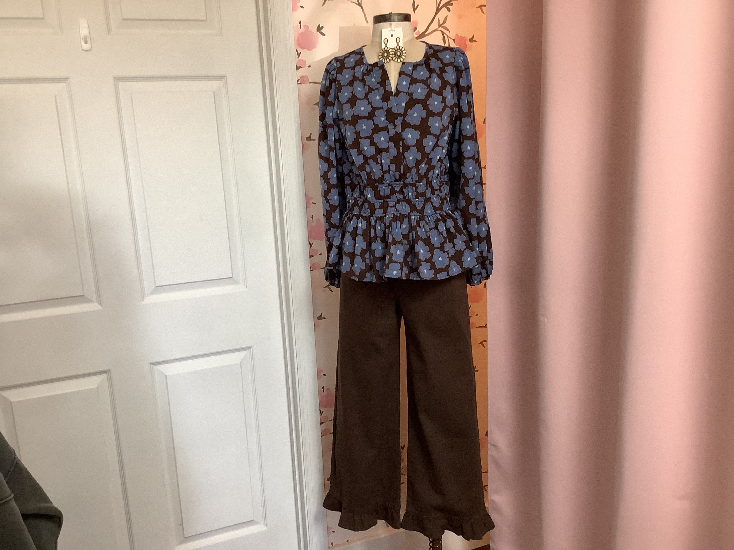 Brown Pants With Ruffled Hem